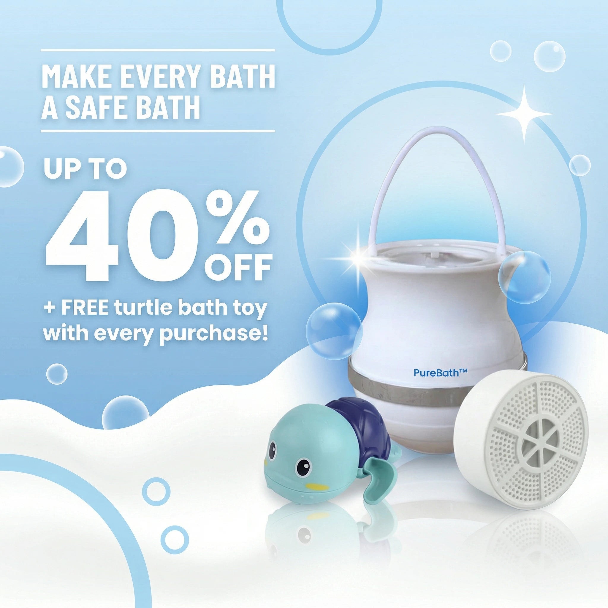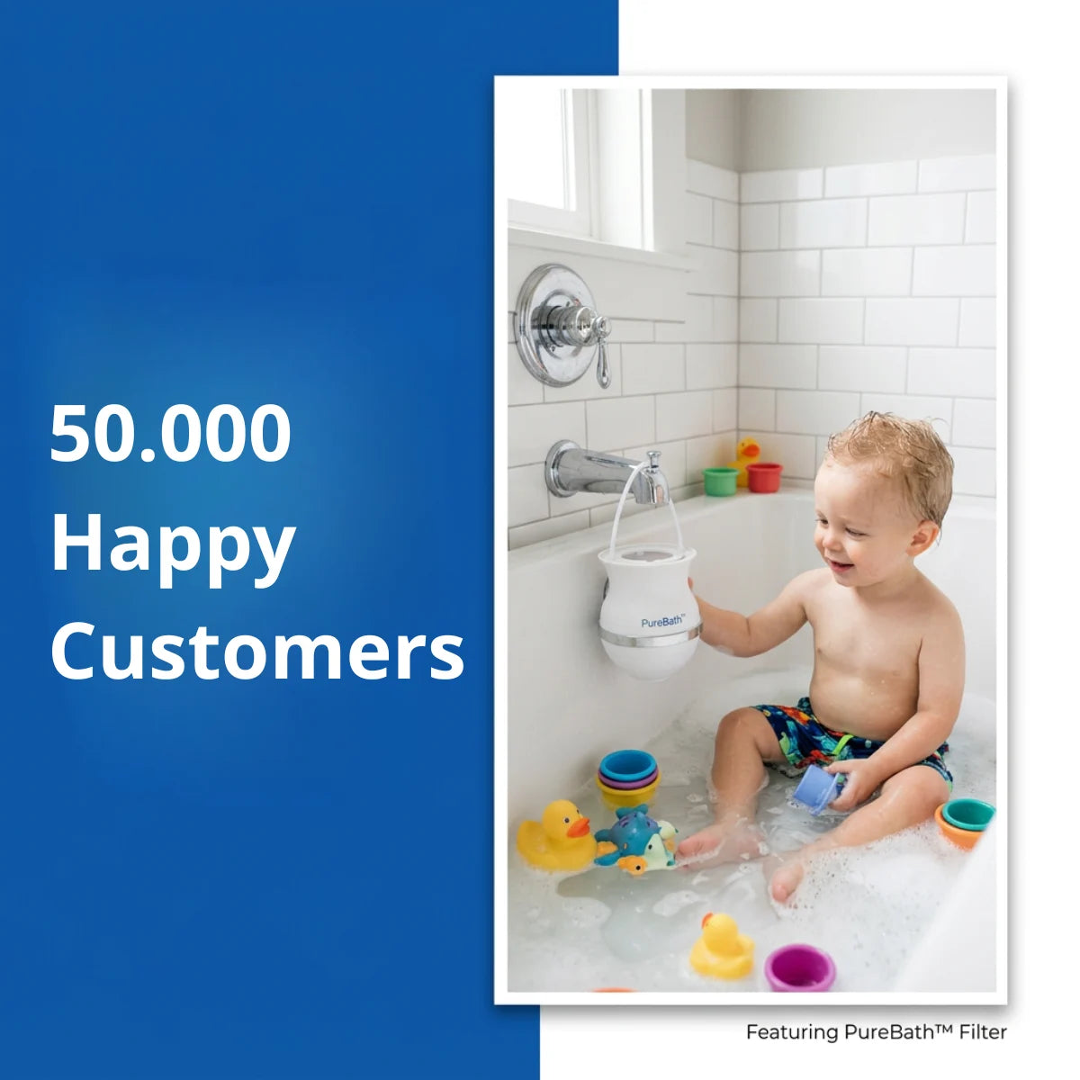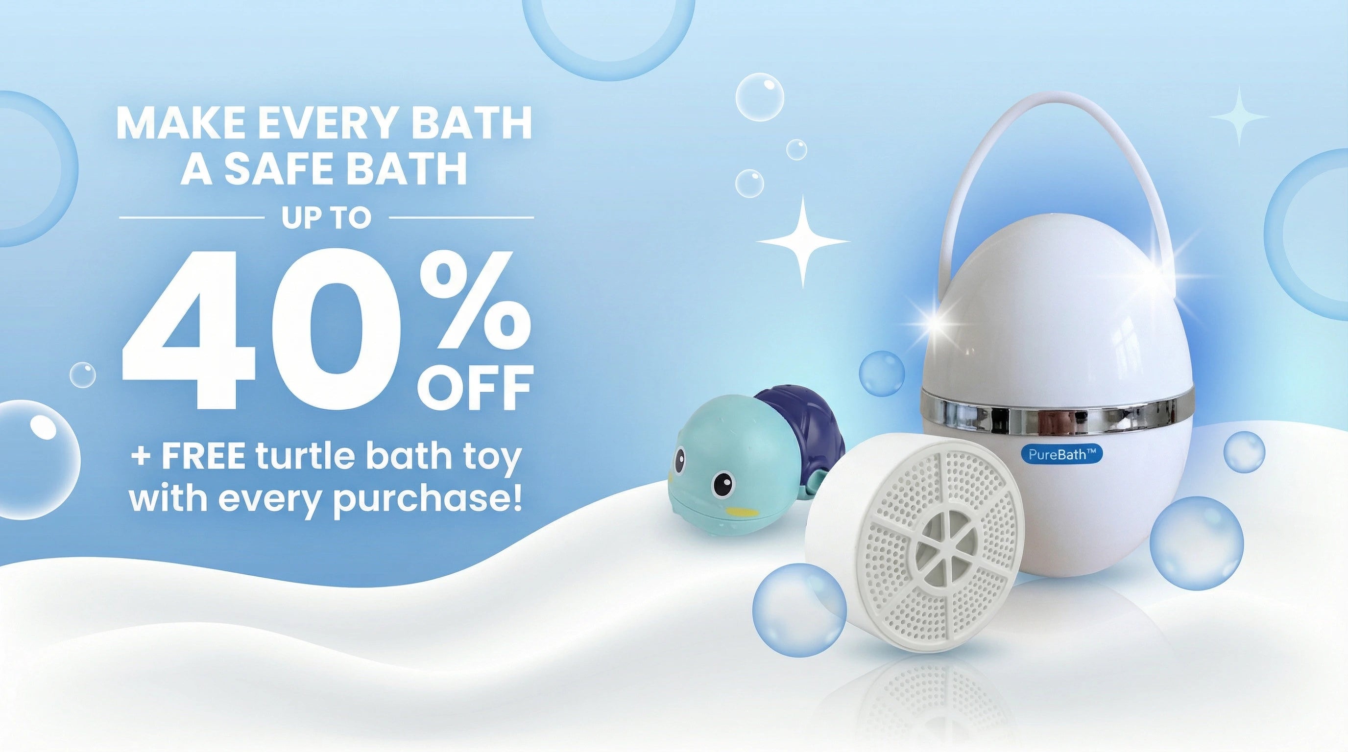 PureBath™'s 8-stage filtration eliminates up to 99% of the harsh contaminants hiding in your tap water — the ones your baby soaks in every single night.
